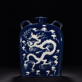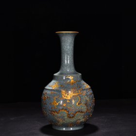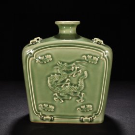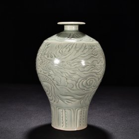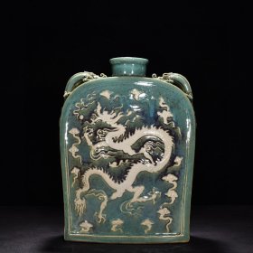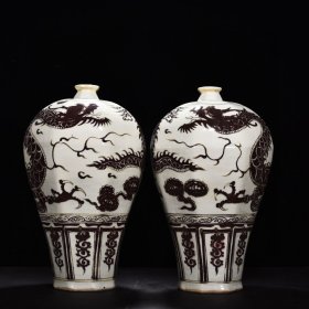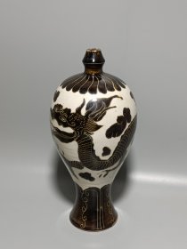 宋代定窑尚食局龙纹梅瓶,白釉黑彩工艺,龙纹生动,云纹环绕,造型规整。胎质细腻,釉色温润,工艺精美。整体保存完好。高约30.8cm,直径14.7cm。适合收藏或陈设。