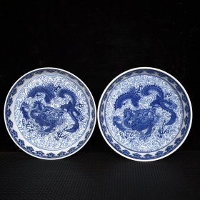 清雍正青花穿云龙纹盘子