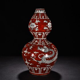 红釉云龙纹葫芦瓶 高46.5厘米 宽22厘米