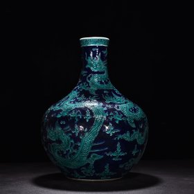明永乐珐华彩孔雀蓝釉云龙纹天球瓶