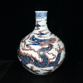 清青花釉里红云龙纹天球瓶 高宽:59*36cm