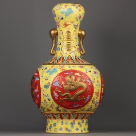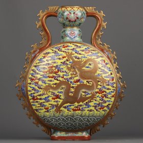 珐琅彩鎏金云龙纹双耳抱月瓶 高宽:40*32cm