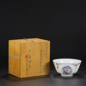 旧藏 明代 成化斗彩团云龙纹深腹大宫碗