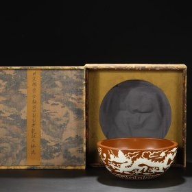 旧藏 明代 宣德紫金釉留白剔刻云龙纹大钵洗