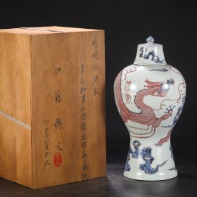旧藏 明代 洪武青花釉里红云龙纹大盖大梅瓶“春寿”