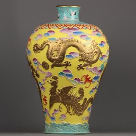 珐琅彩鎏金浮雕云龙纹梅瓶 高宽:47*28cm