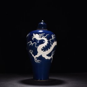 旧藏 元代 霁蓝釉暗刻云龙纹带盖大梅瓶