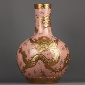 珐琅彩鎏金浮雕云龙纹天球瓶 高宽:48*31cm