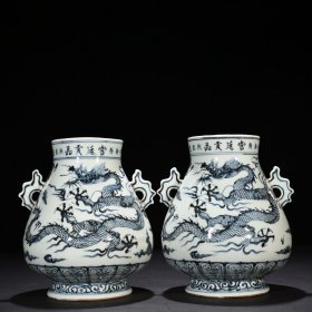明洪武铭文青花云龙纹双耳尊 24*20厘米