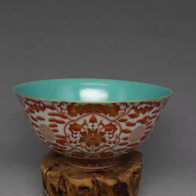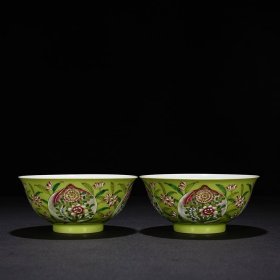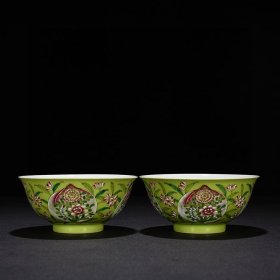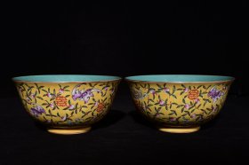 清雍正年柠檬黄釉粉彩福寿纹碗4.5*8.5m1500¥