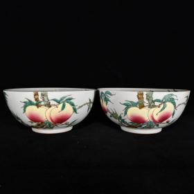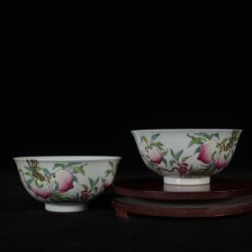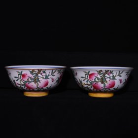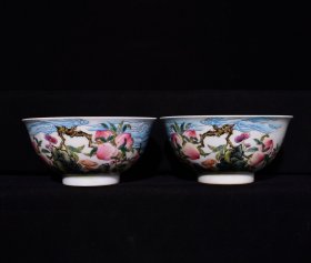 清雍正年制珐琅彩福寿纹碗一对,高7.5×15.5厘米