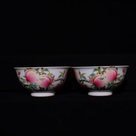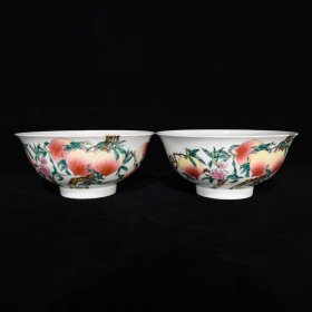 清代雍正粉彩福寿纹碗一对【7×15.5cm】