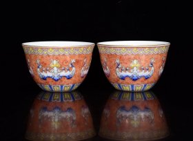 清雍正斗彩福寿纹杯小碗 4*8.5厘米