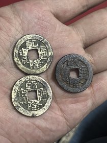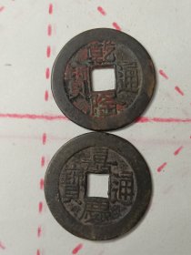 两个顺治通宝,一个乾隆山底隆合出。