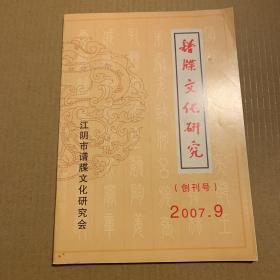 谱牒文化研究 2007年9 总第1期 创刊号 【江阴市谱牒文化研究会】 【家谱类】