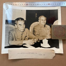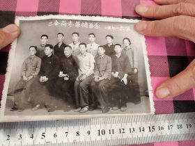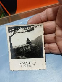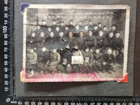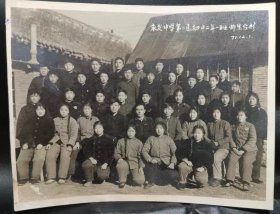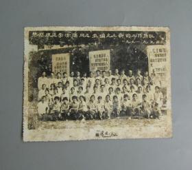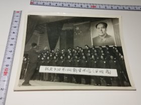 老照片---大幅毛主席像,学生配戴像章!《南京第三中学---东方红“国际歌”,“三大纪律八项注意”演出留念》!(背面有手写留言!1971年,时代特色浓!14.3cm*11.7cm,泛银,包老包真)!