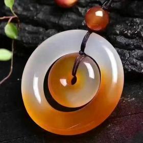 天然玉髓吊坠正品高冰玛瑙俏色平安扣挂件子母双环玉佩毛衣链