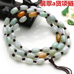 天然a货翡翠米珠吊坠挂绳缅甸三彩玉石8mm珠绳挂链玉佩挂件玉绳子