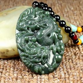 新疆和田玉青玉双龙戏珠玉吊坠男女玉石项链龙玉佩玉挂件