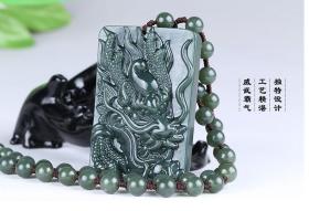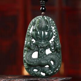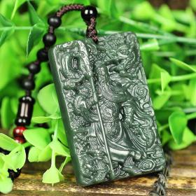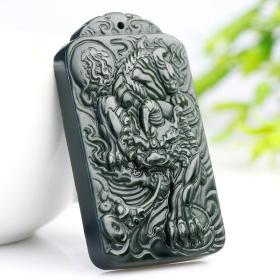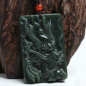 天然新疆和田玉墨青玉龙牌玉吊坠男女款玉石挂件生肖龙玉佩坠项链
