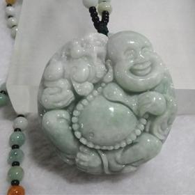 翡翠玉佛吊坠女款 弥勒佛玉坠佛公项链笑佛挂件 天然玉石玉佩玉器