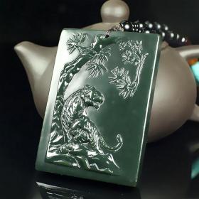 上山虎和田玉吊坠男士款玉石项链玉佩青玉生肖虎玉牌挂件玉坠挂坠