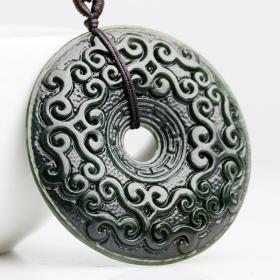 和田玉青玉吊坠 男项链吊坠玉石 双面雕刻生肖龙挂件玉牌吊坠玉佩