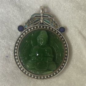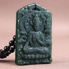 天然新疆和田玉青玉双面观音男士带盘头吊坠挂件玉坠玉佩