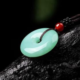 缅甸A货翡翠平安扣吊坠,男女款玉坠玉石挂件玉器玉佩吊坠项链,节日生日纪念日礼物。【赠送权威鉴定证书全国可查,送项链绳绑好发货支持复检,收到即可佩戴,每批次项链绳不同,以实物为准。送礼品盒】 天然石会存在水线纹路,棉絮等,择优发货,介意慎拍。