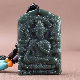 新款双面雕刻和田玉青玉观音项链玉佩挂件玉坠纳福护身吊坠保平安