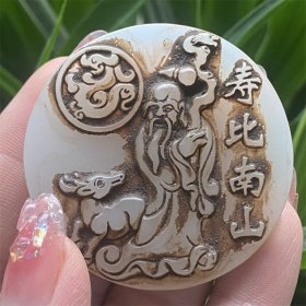 战汉古董白玉挂件古玩老古玉老货玉佩牌子寿星文玩老物件
