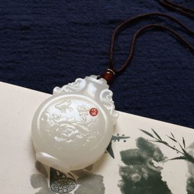 390_和田玉【龙凤呈祥】玉佩挂件 镂空雕刻,双面雕工。