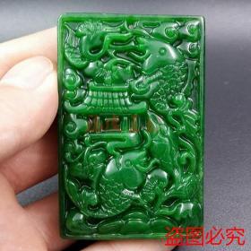 天然翡翠年年有余挂件干青铁龙生祖母绿鲤鱼跃龙门吊坠玉佩
