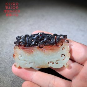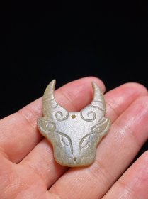 商 和田玉籽料 沁色 牛首 玉佩 挂件 长3.7 宽0.6 高4.7厘米 重12.8克