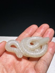 清乾隆 和田玉籽料 脂白玉 蛇形 玉佩 挂件 把件 长4 宽2 高7.2厘米 重43.5克