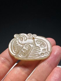 元 和田玉籽料白玉 迦楼罗 神鸟珮 玉饰 挂件 玉佩 高5.6厘米 宽4.1厘米 厚1.1厘米 重30.9克