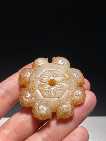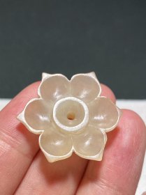 明 和田玉籽料 白玉 六瓣帽花 玉佩 挂件 长3.3宽3.3厚0.8厘米 重6.8克 白玉质,玉质油润细腻,局部有沁色。呈扁平体,花瓣状,古人用于镶嵌于发簪之上。小巧玲珑,精致美感,工艺精湛。
