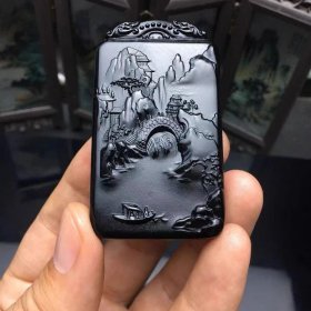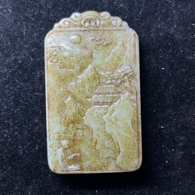 新疆和田玉墨玉双面牌子山水牌男女玉石精雕羊脂吊坠玉牌玉佩挂件古玉老玉文玩老物件