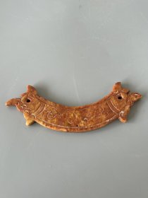 老玉古玉挂件汉代玉璜玉佩文玩手把件高古玉吊坠古董双龙玉璜摆件