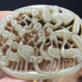 旧藏证书老玉和田玉松鹤延年镂空玉质细腻挂件雕工雕刻精湛玉佩古玉老玉文玩老物件