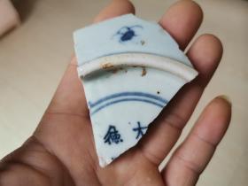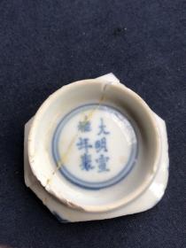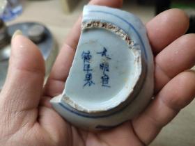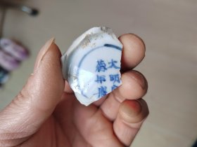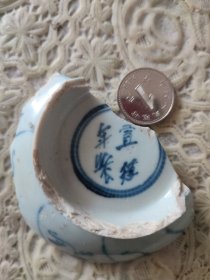 明代青花瓷片小碗底,底款宣德年制,直径3厘米。
