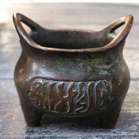 纯铜小香炉六字真言铜香炉摆件宣德香炉书房摆件铜炉三足香炉 精美做工,带底款“宣”,称为宣德炉