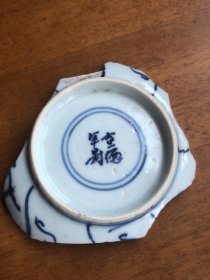清代早期宣德年制款完整底足青花灵芝纹瓷片,9、7、2厘米