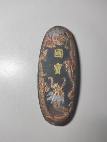 老墨块 国宝 金色双龙 背款大明宣德年造 看好下拍,不支持退货!