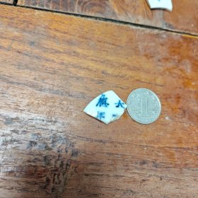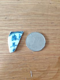 明青花瓷片宣德款(不全)-青花瓷标本(硬币是参照物)