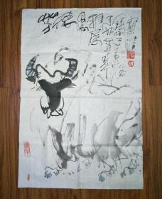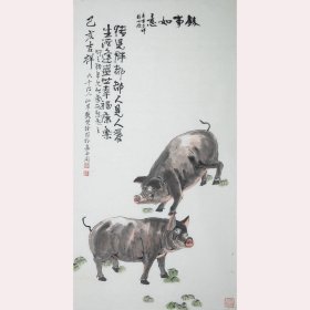 【藏家旧藏】《双吉图》一幅,四川著名画家,诗人、文人画家、美术教育家,擅意笔花鸟画(纸本,尺寸100*50,钤印:孙氏,竹篱),编号:ZBZMX001043。(放大看细节)