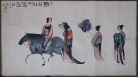 蜀中当代顶尖人物画大家、中国国家画院研究员、四川省诗书画院专业画家(著名画家陈丹青岳父)彭先诚2009年《琥国夫人夜游图》横批一张,尺寸:137×34.5