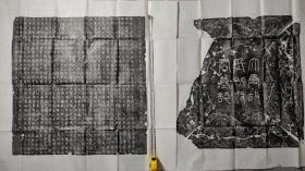 大周故陈府君墓志铭、志盖拓片一套( 稀见墓志拓片。唐代长安二年<公元702年>墓志,厚纸精拓。内见多个“武后文字”,如“人、日、月、初”等,是研究“武后文字”的实物资料)
