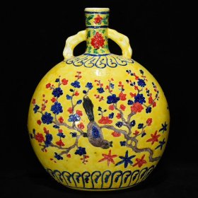 珐华彩花鸟碗扁瓶尺寸28*23.5厘米