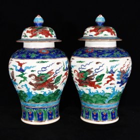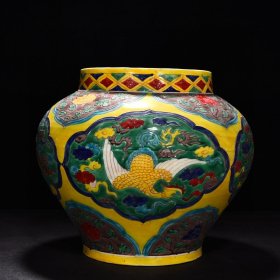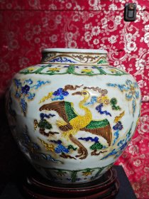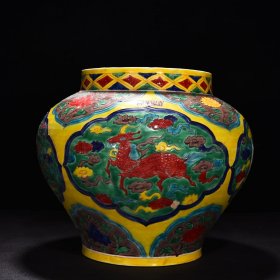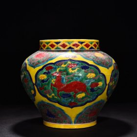 瓷器 明永乐珐华彩麒麟凤纹罐 高30厘米宽32厘米